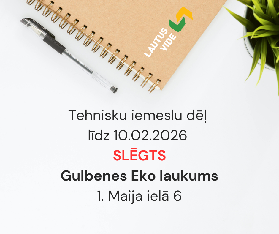 Tehnisku iemeslu dēļ līdz 10.02.2026. SLĒGTS Gulbenes eko laukums, 1. Maija ielā 6.